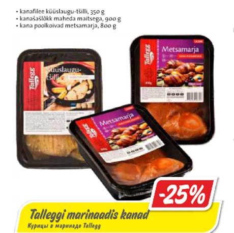Внимание! Данная кампания закончилась! Товар курицы в маринаде tallegg -25% продавался со скидкой в магазине Hüper Rimi в период с 21.08.2013 по 03.09.2013 Hüper Rimi