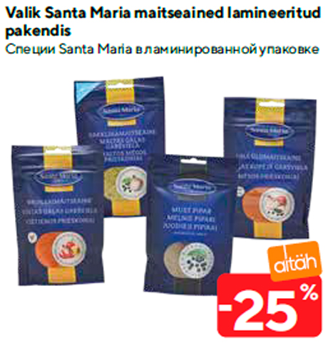 Внимание! Данная кампания закончилась! Товар специи santa maria в ламинированной упаковке -25% продавался со скидкой в магазине Maxima в период с 19.05.2020 по 25.05.2020 Maxima X