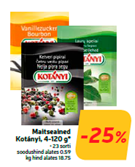 Товар специи kotányi, 4-120 г * -25% продавался со скидкой в магазине Hüper Rimi, Rimi, Mini Rimi в период с 09.06.2020 по 15.06.2020
