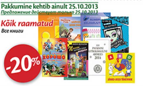 Внимание! Данная кампания закончилась! Товар все книги -20% продавался со скидкой в магазине Maxima в период с 25.10.2013 по 25.10.2013 Maxima X
