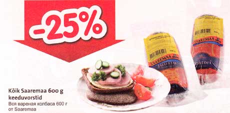 Внимание! Данная кампания закончилась! Товар вся вареная колбаса 600 г от sааrеmаа продавался со скидкой в магазине Hüper Rimi, Rimi в период с 22.08.2012 по 28.08.2012 Hüper Rimi, Rimi