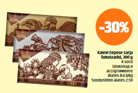 Внимание! Данная кампания закончилась! Товар шоколад в ассортименте -30% продавался со скидкой в магазине Säästumarket в период с 08.05.2017 по 14.05.2017 Säästumarket
