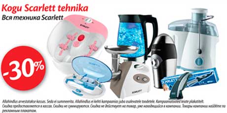Внимание! Данная кампания закончилась! Товар вся техника scarlett продавался со скидкой в магазине Maxima в период с 18.09.2012 по 24.09.2012 Maxima X
