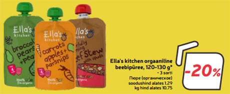 Внимание! Данная кампания закончилась! Товар пюре (органическое)* -20% продавался со скидкой в магазине Hüper Rimi, Rimi в период с 11.07.2017 по 17.07.2017 Hüper Rimi, Rimi