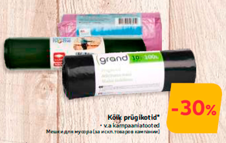 Внимание! Данная кампания закончилась! Товар мешки для мусора -30% продавался со скидкой в магазине Hüper Rimi в период с 22.08.2017 по 28.08.2017 Hüper Rimi