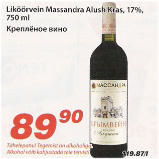 Период кампании: 23.02.2010 - 01.03.2010 Креплёное вино17%, 750ml Liköörvein Massandra Alush Kras Kriisis.ee не несёт ответственности за содержание комментариев. Мнение автора комментария может отличаться от мнения kriisis.ee. По возможности, отслеживая комментарии, kriisis.ee оставляет за собой право удалять их без объяснения причин. Если вы заметили неуместный комментарий, пожалуйста сообщите нам о нём.