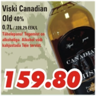 Период кампании: 19.03.2010 - 01.04.2010 Виски40%, 0.7 L Viski Canadian Old Kriisis.ee не несёт ответственности за содержание комментариев. Мнение автора комментария может отличаться от мнения kriisis.ee. По возможности, отслеживая комментарии, kriisis.ee оставляет за собой право удалять их без объяснения причин. Если вы заметили неуместный комментарий, пожалуйста сообщите нам о нём.