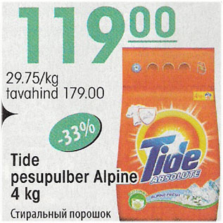 Период кампании: 08.04.2010 - 14.04.2010 Стиральный порошок4 kg Tide pesupulber Alpine
