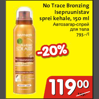 Период кампании: 28.04.2010 - 11.05.2010 Автозагар-спрей для тела150ml NoTrace Bronzing Isepruunistav Sprei kehale
