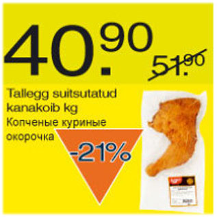 Продукт копченые куриные окорочка продавался со скидкой в магазине Säästumarket в период с 26.05.2010 по 01.06.2010.