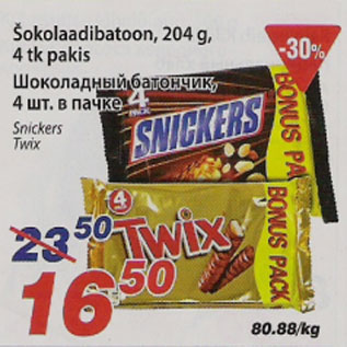 Период кампании: 22.06.2010 - 28.06.2010 Шоколадный батончик204g, 4 tk pakis