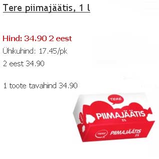 Период кампании: 30.06.2010 - 13.07.2010 Мороженое1 L Tere piimajäätis