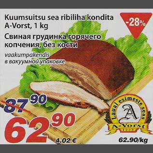 Период кампании: 26.10.2010 - 01.11.2010 Свиная грудинка горячего копчения, без костиKuumsuitsu sea ribiliha kondita A-Vorst