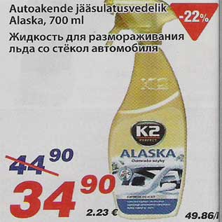 Период кампании: 16.11.2010 - 22.11.2010 Жидкость для размораживания льда со стёкол автомобиляAutoakende jääsulatusvedelik Alaska