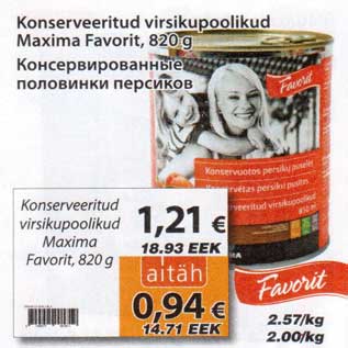Период кампании: 04.01.2011 - 10.01.2011 Консервированные половинки персиковKonserveeritud virsikupoolikud Maxima Favorit
