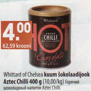 Период кампании: 06.01.2011 - 19.01.2011 Горячий шоколадный напитокWhittard of Chelsea kuum šokolaadijook Aztec Chilli