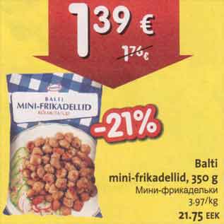 Продукт мини-фрикадельки продавался со скидкой в магазине Hüper Rimi, Rimi в период с 16.03.2011 по 29.03.2011.