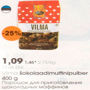 Период кампании: 17.11.2011 - 07.12.2011 Порошок для приготовления шоколадных маффиновVilma šokolaadimuffinipulber