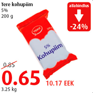 Период кампании: 08.12.2011 - 16.12.2011 Цена: 0.65€ ТворогTere kohupiim