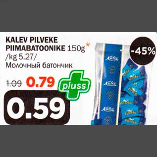 Период кампании: 18.04.2012 - 15.05.2012 Цена: 0.79€ Молочный батончик* Дополнительные преимущества сберегательного Card + карта не распространяется на магазины Põlva TÜ, Võru TÜ и Haapsalu TÜ KALEV PILVEKE PIIMABATOONIKE 150g* *Lisasoodustused Säästukaart+ kaardiga ei kehti Põlva TÜ, Võru TÜ ja Haapsalu TÜ kauplustes