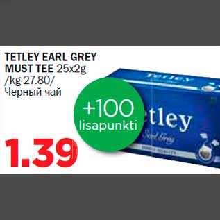 Период кампании: 16.05.2012 - 12.06.2012 Цена: 1.39€ Черный чайTETLEY EARL GREY MUST TEE 25x2g