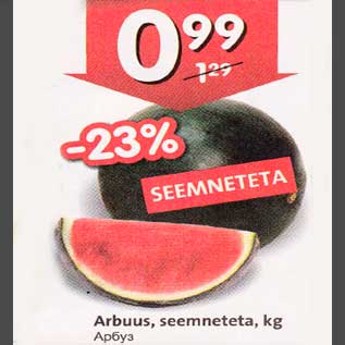 Период кампании: 13.06.2012 - 19.06.2012 Цена: 0.99€ АрбузArbuus, seemneteta, kg
