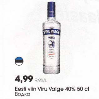 Период кампании: 14.06.2012 - 27.06.2012 Цена: 4.99€ ВодкаEesti viin Viru Valge 40% 50 cl Kriisis.ee не несёт ответственности за содержание комментариев. Мнение автора комментария может отличаться от мнения kriisis.ee. По возможности, отслеживая комментарии, kriisis.ee оставляет за собой право удалять их без объяснения причин. Если вы заметили неуместный комментарий, пожалуйста сообщите нам о нём.