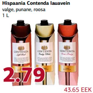 Период кампании: 05.07.2012 - 15.07.2012 Цена: 2.79€ Столовое вино белое,красное,розовоеHispaania Contenda lauavein