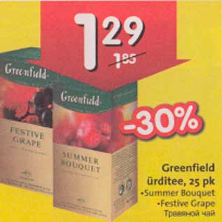 Период кампании: 18.07.2012 - 31.07.2012 Цена: 1.29€ Травяной чайGreenfield ürditee, 25 pk