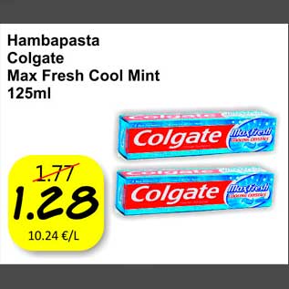 Период кампании: 20.07.2012 - 02.08.2012 Цена: 1.28€ Зубная пастаHambapasta Colgate Max Fresh Cool Mint 125ml