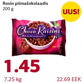 Период кампании: 02.08.2012 - 10.08.2012 Цена: 1.45€ Изюм в молочном шоколадеRosin piimašokolaadis 200 g