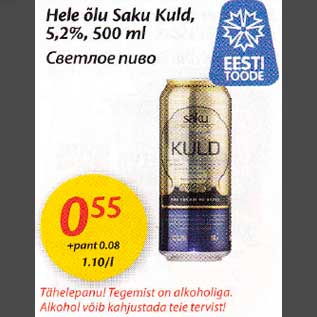 Период кампании: 14.08.2012 - 20.08.2012 Цена: 0.55€ Cвеmлое пuвоHele õlu Saku Kuld,5,2%,500 ml Kriisis.ee не несёт ответственности за содержание комментариев. Мнение автора комментария может отличаться от мнения kriisis.ee. По возможности, отслеживая комментарии, kriisis.ee оставляет за собой право удалять их без объяснения причин. Если вы заметили неуместный комментарий, пожалуйста сообщите нам о нём.