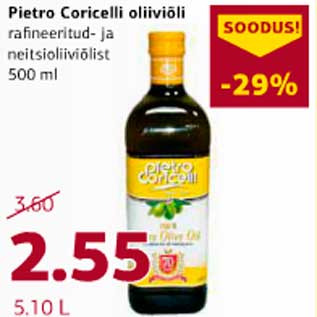 Период кампании: 16.08.2012 - 24.08.2012 Цена: 2.55€ Рафинированное оливковое и оливковое маслом 500млPietro Coricelli oliiviõli rafineeritud- ja neitsioliiviõlist 500ml
