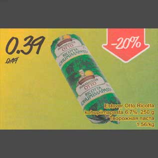 Период кампании: 01.10.2012 - 07.10.2012 Цена: 0.39€ Творожная паста Otto RicottaEstover Otto Ricotta kohupiimapasta