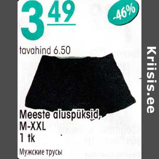 Товар мужские трусы продавался со скидкой в магазине Selver в период с 01.11.2012 по 14.11.2012 по цене 3.49 евро.