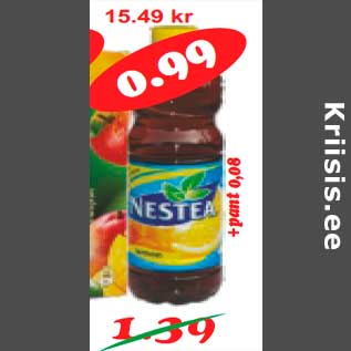 Период кампании: 01.11.2012 - 30.11.2012 Цена: 0.99€ Персиковый холодный чайNestea Virsiku jäätee 1,5 l(0,66l)