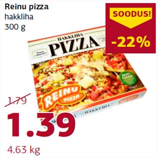 Период кампании: 15.11.2012 - 23.11.2012 Цена: 1.39€ Пицца c фаршемReinu pizza hakkliha 300 g