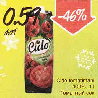 Период кампании: 17.12.2012 - 23.12.2012 Цена: 0.59€ Томатный сокCido tomatimahl 100%, 1 l