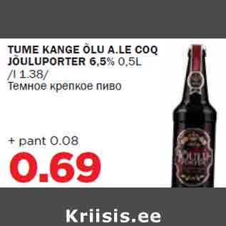 Продукт темное крепкое пиво продавался со скидкой в магазине Maksimarket, Konsum в период с 19.12.2012 по 01.01.2013 по цене 0.69 евро.