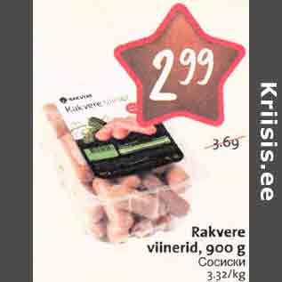 Период кампании: 19.12.2012 - 25.12.2012 Цена: 2.99€ СосискиRakvere viinerid, 900 g