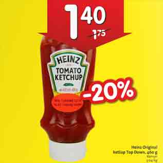 Период кампании: 02.01.2013 - 15.01.2013 Цена: 1.40€ КетчупHeinz Originaal ketšup Top Down, 460 g