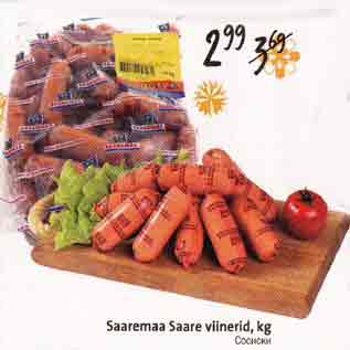 Период кампании: 16.01.2013 - 29.01.2013 Цена: 2.99€ СосискиSaaremaa Saare viinerid, kg