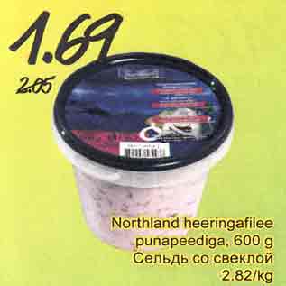 Период кампании: 04.02.2013 - 10.02.2013 Цена: 1.69€ Сельдь со свеклойNortland heeringafilee punapeediga, 600 g