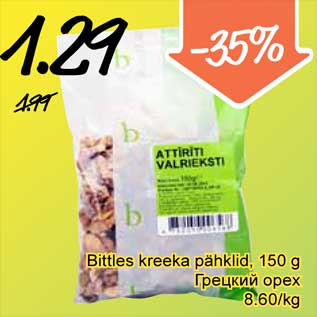Период кампании: 01.04.2013 - 07.04.2013 Цена: 1.29€ Грецкий орехBittles kreeka pähklid, 150 g