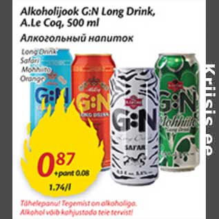 Период кампании: 04.06.2013 - 10.06.2013 Цена: 0.87€ Алкогольный напитокAlkoholijook G:N Long Drink, A.Le Coq, 500 ml Kriisis.ee не несёт ответственности за содержание комментариев. Мнение автора комментария может отличаться от мнения kriisis.ee. По возможности, отслеживая комментарии, kriisis.ee оставляет за собой право удалять их без объяснения причин. Если вы заметили неуместный комментарий, пожалуйста сообщите нам о нём.