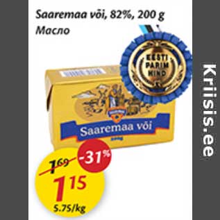 Период кампании: 04.06.2013 - 10.06.2013 Цена: 1.15€ МаслоSaaremaa või, 82%, 200 g