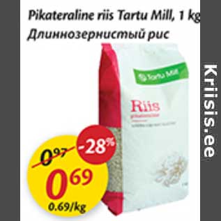 Период кампании: 18.06.2013 - 24.06.2013 Цена: 0.69€ Длиннозернистый рис1 kg Pikateraline riis Tartu Mill,