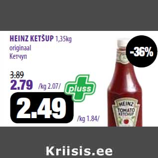 Период кампании: 03.07.2013 - 15.07.2013 Цена: 2.49€ Кетчуп1,35kg, originaal HEINZ KETŠUP