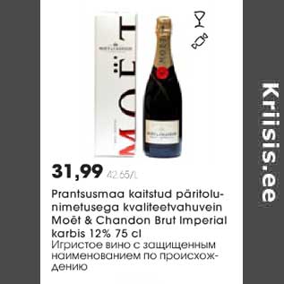 Продукт игристое вино с защищённым наименованием по происхождению продавался со скидкой в магазине Selver в период с 18.07.2013 по 07.08.2013 по цене 31.99 евро.