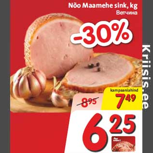 Период кампании: 23.10.2013 - 29.10.2013 Цена: 6.25€ ВетчинаNõo Maamehe sink, kg